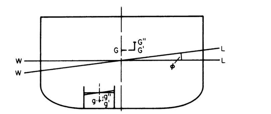 This is a crucial problem pertaining to any stability factor of a vessel. As the ship heels, a pseudo force acts to any liquid which is present inside and thus the liquid changes its position thus changing the position of G, and we know with changing in G, values like GM, GZ would change and thus contribute to instability.